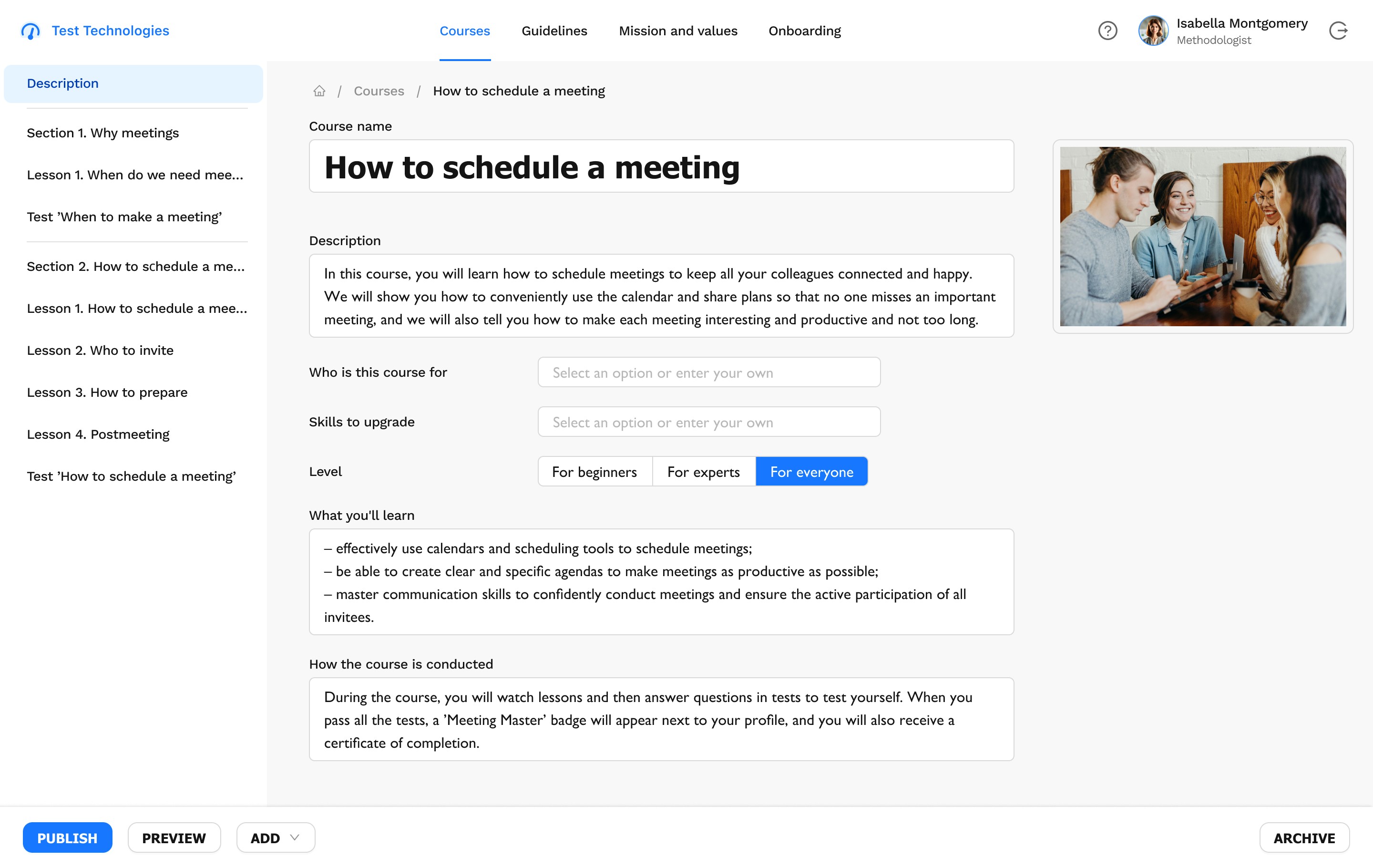 Methodologists write the course and tests for it as text in a text editor (based on the results of their observations)