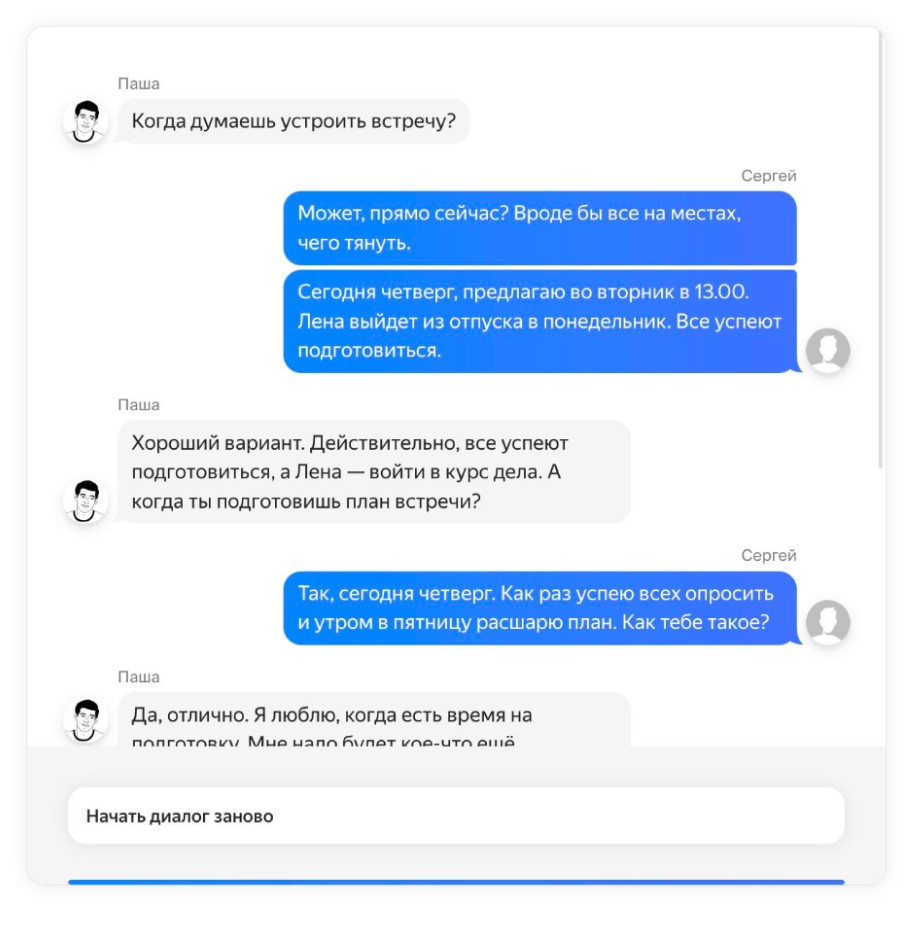 The dialogue has one completely correct path, at the end of it it is proposed to start the dialogue again